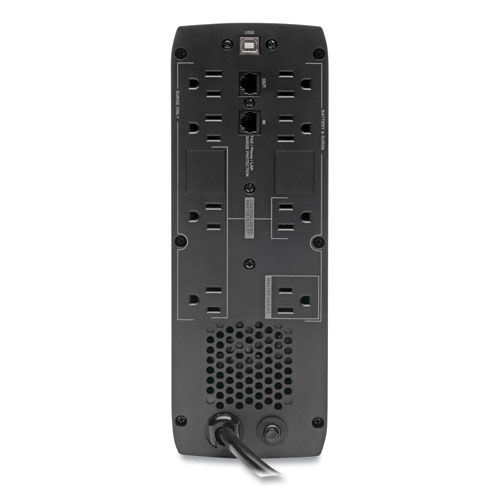 Designed for desktop use with computers, peripherals and telecom equipment. Offers complete protection from blackouts, brownouts and transient surges. Eco outlets automatically power off peripherals. Ultra compact UPS supports a variety of placement options for desktop or wall-mount use. Space-saving right angle input plug.