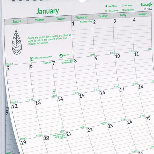 EcoLogix Monthly Wall Calendar, EcoLogix Artwork, 12 x 17, White/Green Sheets, 12-Month (Jan to Dec): 2025EcoLogix Monthly Wall Calendar, EcoLogix Artwork, 12 x 17, White/Green Sheets, 12-Month (Jan to Dec): 2025