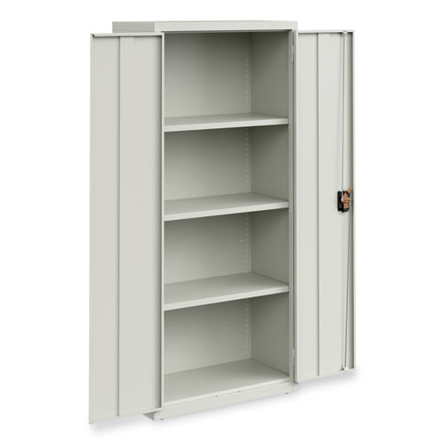 Product Details** Global Product Type Office & All-Purpose Storage Cabinets Color(s) Light Gray Number of Shelves 4 Shelf Capacity (Weight) 180 lb Material(s) Industrial Grade Steel Overall Width 30″ Overall Depth 15″ Overall Height 66″ Door Quantity 2 Caster/Glide/Wheel (4) Glides Edge Detail Profile Square Series Name Storage Cabinet – 15D Product Biodegradability Indicator N Product Biodegradability in Days 0 Product Compostability Indicator N Compliance Standards GREENGUARD Certified,GREENGUARD Gold Certified,Meets ANSI BIFMA Standards,TAA Compliant Pre-Consumer Recycled Content Percent 14% Post-Consumer Recycled Content Percent 16% Total Recycled Content Percent 30% Special Features Fully Assembled—Item ships fully assembled,no assembly required. Country Of Origin MX Carton Weight 96 lbs. Carton Pack Quantity 1 EA Pack Quantity 0 UPC 042167001735 UNSPSC 56101530 Shipping Weight & Item Dimensions Weight 96 lbs. Length 32 in Height 68.5 in Width 17.5 in Warranty Manufacturer’s limited lifetime warranty.