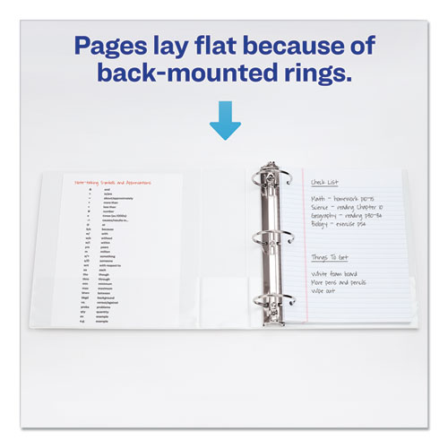• Rings are mounted on back cover for a clean spine and pages lie flat.