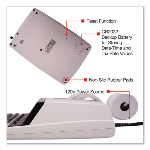 Whether in an office setting or at home, the EL2630PIII is the perfect 12-digit printing calculator for the occasional user. The extra-large display makes for easy viewing. Engineered with a Microban antimicrobial agent that reduces the growth of microbes and bacteria on the keys that cause discoloration and odors. You will always be able to count on the fast and reliable 4.8 lines-per-second ribbon printer. Other functions include: mark up key for calculating cost-sell-margin calculations, percent changes, automatic add-on/discounts calculations, automatic tax keys, clock/calendar function, conversion function, constants in multiplication and division, grand total key, change sign key, large-size add and subtract keys, fully selectable decimal settings, date/non-add key, item count, average key, selectable rounding switches and four key independent memory. AC power.
