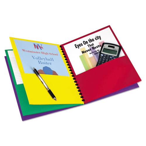 Product Details** Global Product Type Eight Pocket Folders Sheet Size 11 x 8.5 Color Family Multicolor Brad/Prong/Tang Fasteners No Front Cover Color(s) Assorted Back Cover Color(s) Assorted Color Assortment Green,Purple,Red,Yellow Inside Pockets One Back,Six Center,One Front Cover Material(s) Heavyweight Paper Stock Pocket Leaves Color(s) Assorted Texture/Finish Leatherette Product Biodegradability in Days 0 Green Information Paper contains 10% post-consumer recycled content, 10% total recycled content. Special Features With Assorted Color Pockets Country Of Origin MX Carton Weight 6 lbs. Carton Pack Quantity 12 EA Pack Quantity 0 UPC 078787996564 UNSPSC 44122013 Shipping Weight & Item Dimensions Weight 0.35 lbs. Length 11.7 in Height 0.4 in Width 9.7 in