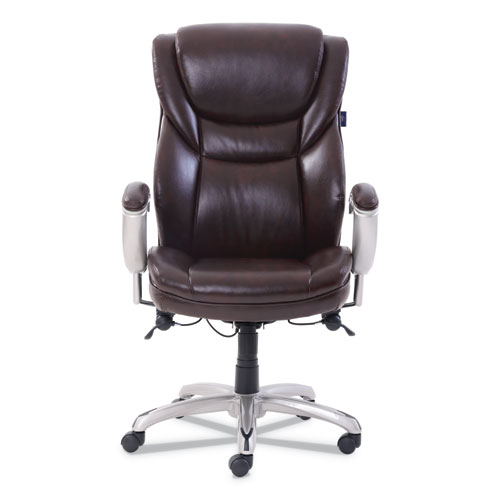 Product Details** Global Product Type Office Chairs Color Family Brown Arms Included Yes Pneumatic Seat Height Adjustment Yes Tilt Tension/Tilt Lock Yes Integral Lumbar Support No Seat Surface Material Family Bonded Leather Recommended Application Area(s) Executive & Management,General Office & Task Seat Color Brown Back Color Brown Arm Type T-Bar Weight Capacity Supports Up to 300 lb Back Height Adjustment No Seat Glide Mechanism No Knee Tilt No Synchronized Knee Tilt No Dual-Action Tilt No Posture Lock No Multi-Task Control No Asynchronous Control No Dual-Clutch Posture Control No Variable Synchro-Tilt No Arm Adjustability Height Armrest Color Brown Armrest Material Bonded Leather Distance Between Arms 22.5″ to 28″ Arm Height From Seat 6.25″ Overall Width Minimum 21″ Overall Width Maximum 28″ Overall Depth Maximum 31″ Overall Height Minimum 44.25″ Overall Height Maximum 47.25″ Seat Width Maximum 22.25″ Seat Depth Maximum 22″ Seat Height Minimum 19″ Seat Height Maximum 22″ Seat Surface Material Bonded Leather Back Width Maximum 22.5″ Back Height Maximum 28.75″ Back Surface Material Bonded Leather Back Surface Material Family Bonded Leather Base/Frame Color Silver Base/Frame Material(s) Nylon Caster/Glide Details Five Hooded Dual-Wheel Casters Product Biodegradability Indicator N Product Biodegradability in Days 0 Product Compostability Indicator N Compliance Standards Meets or Exceeds BIFMA Standards Pre-Consumer Recycled Content Percent 0% Post-Consumer Recycled Content Percent 0% Total Recycled Content Percent 0% Disclaimer Statement Casters supplied with this chair are not suitable for all floor types. Country Of Origin CN Carton Weight 62 lbs. Carton Pack Quantity 1 EA Pack Quantity 0 UPC 656292501536 UNSPSC 56112102 Shipping Weight & Item Dimensions Weight 62.01 lbs. Length 34.25 in Height 17.25 in Width 25.5 in Warranty Manufacturer’s limited five-year warranty.