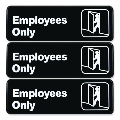 Employees Only Indoor/Outdoor Wall Sign, 9″ x 3″, Black Face, White Graphics, 3/Pack