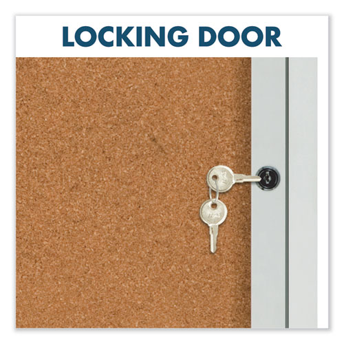 Communicate clearly and securely with Quartet Enclosed Indoor Cork Bulletin Boards. Minimize the risk of damage to important documents. Clear, acrylic windows ensure visibility for your message while locking doors secure documents in place. Information is easy to update and change. Thick self-healing natural cork holds push pins tightly and provides an excellent, resilient tacking surface. Each board has a dense fiberboard backing, sealed to reduce moisture absorption and resist warping. Full-length hinges. Ideal for indoor use. Available in a wide variety of frame finishes, designed to complement any office interior. Choose from one, two and three door models. Includes one key per lock.