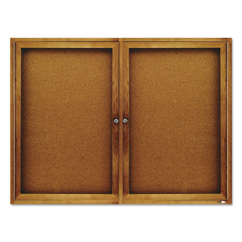 Product Details** Global Product Type Bulletin Boards – Wall-Mount Board Surface Type(s) Bulletin Magnetic Board Surface No Surface Material Cork Surface Color Tan Dedicated Projection Screen No Flipchart Mounting System No Supports Custom Surface Formatting No Frame Material Medium Density Fiberboard (MDF) Frame Color/Finish Oak Finished Board Width 48″ Board Depth 3.9″ Board Height 36″ Preformatted Board Surface No Mounting Details Wall-Mount Hardware (Included) Product Biodegradability in Days 0 Package Includes (2) Keys,Mounting Kit Pre-Consumer Recycled Content Percent 0% Post-Consumer Recycled Content Percent 0% Total Recycled Content Percent 0% Special Features Two Doors Country Of Origin CN Carton Weight 33 lbs. Carton Pack Quantity 1 EA Pack Quantity 0 UPC 034138364000 UNSPSC 44111907 Shipping Weight & Item Dimensions Weight 33 lbs. Length 52 in Height 3 in Width 40.25 in Warranty Manufacturer’s twenty-year warranty.