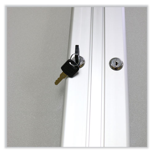 Keep your postings safe and secure outdoors. Message center is built to withstand most outdoor conditions with a durable aluminum frame and weather-resistant backing. Full-length piano-hinge doors have shatter-resistant acrylic inserts, preventing vandalism and break-ins, with flush mount locks for added security. Vinyl bulletin board surface.