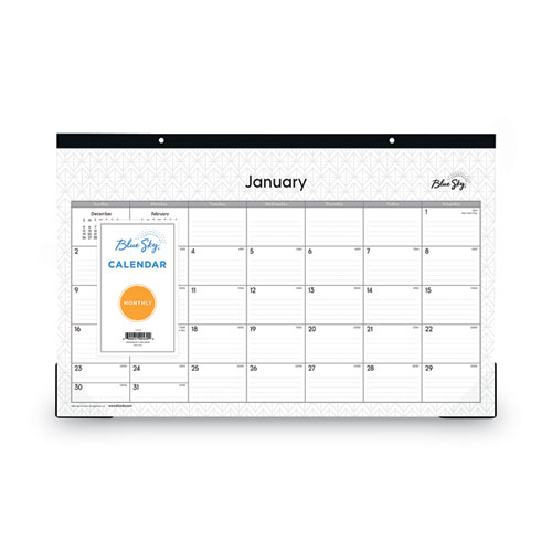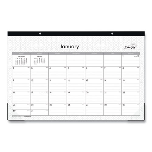 Product Details** Global Product Type Desk Pad Calendars Dated Yes Academic Year No Calendar Format Monthly Edition Year 2025 Calendar Term 12-Month (Jan to Dec) Binding Type Taped Color Family White Refillable No Calendar Spread Format One Month per Page Julian Dates Yes Size (Bound-Side First) 17 x 11 Binding Color(s) Black Corner Color(s) Clear Page Theme Geometric Artwork Calendar Reference Blocks One Past Month,One Future Month Sheets per Calendar/Planner 12 Sheet Color(s) White/Gray Punching Top: 2-Hole Holder Style Two-Corner Desk-Pad with Backboard (Included) Holder Color Clear/Natural Holder Material Chipboard,Poly Hanger Style Eyelet Reversible No Seasonal Availability Yes Product Biodegradability Indicator N Product Biodegradability in Days 0 Product Compostability Indicator N Pre-Consumer Recycled Content Percent 0% Post-Consumer Recycled Content Percent 0% Total Recycled Content Percent 0% Disclaimer Statement This product was made using wood sourced from a certified managed forest. Country Of Origin CN Carton Weight 3 lbs. Carton Pack Quantity 6 EA Pack Quantity 0 UPC 699931914304 UNSPSC 44121621 Shipping Weight & Item Dimensions Weight 0.5 lbs. Length 17 in Height 11 in Width 0.125 in