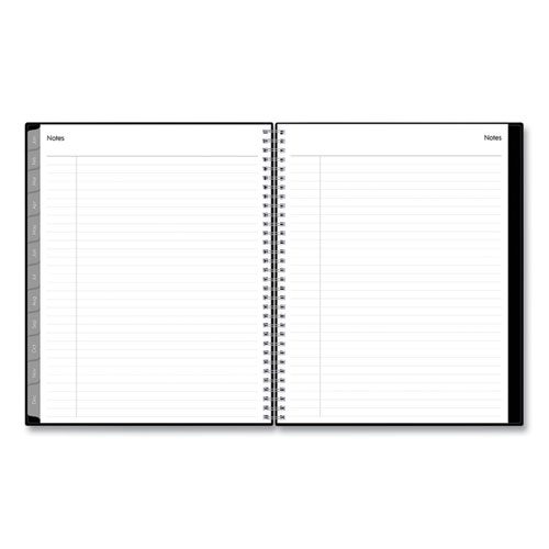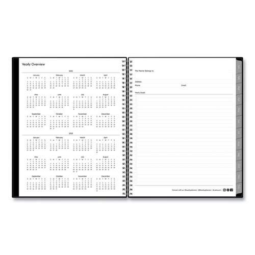 The professional exterior you’re looking for, with the interior content you require. Easily plan out your year and stay on track every month, every week, every day along the way with the stylish Enterprise Weekly/Monthly Planner. One week per two-page spreads provide plenty of space for your daily schedule throughout the week, Monday through Sunday. Monthly spreads feature a standard daily block format with reference calendars and space for month-spanning notes, giving you everything you need for longer-range planning tasks. Durable, coated monthly tabs offer quick access to past, present and future months. Additional resources in the back of the book help you plan out your year and keep everything on track. Flexible cover and snag-free twin-wire binding ensure everything stays neatly together. Thick, premium, acid-free pages are printed entirely with soy-based inks.