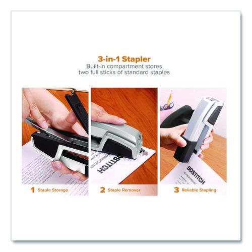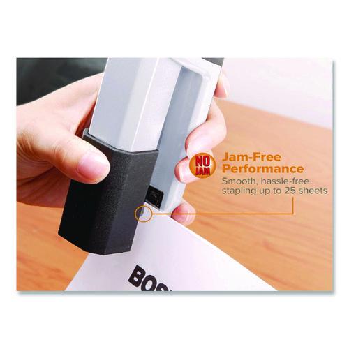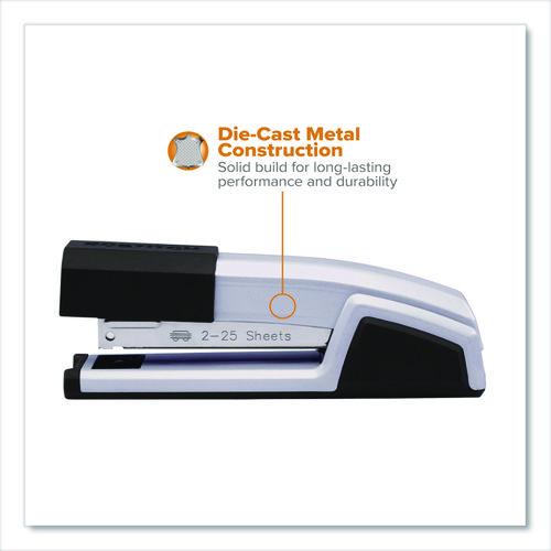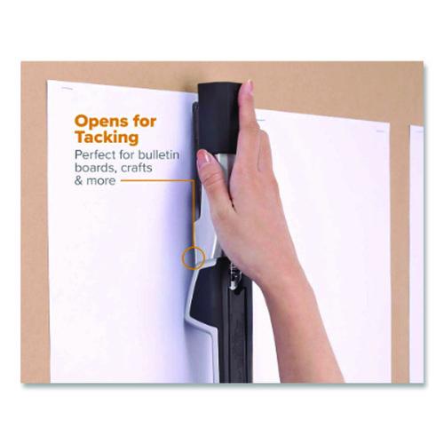 Premium performance without sacrificing aesthetics – the Epic is true to its name. The stapler conveniently has: a swing-out staple EZ Remover for quick fixes, a hidden Staple Store slot to keep extra staples handy, and ability to open 180-degrees for bulletin board tacking and crafting. Made of durable die-cast metal with a soft rubber grip and base, this office necessity is made for comfortable, lasting use. No-Jam technology prevents staple jams for smooth stapling of up to 25 sheets of paper (25% more than standard staplers). As a bonus, traditional Dual Clinch adjustable plate provides an option of standard or temporary stapling (for a quick way to fasten and quickly remove later). An accent to any surface it rests on, the stapler stands vertically or horizontally for easier access and storage. Uses Premium Standard Staples to deliver extraordinary results. Perfect for school, work or the home office.