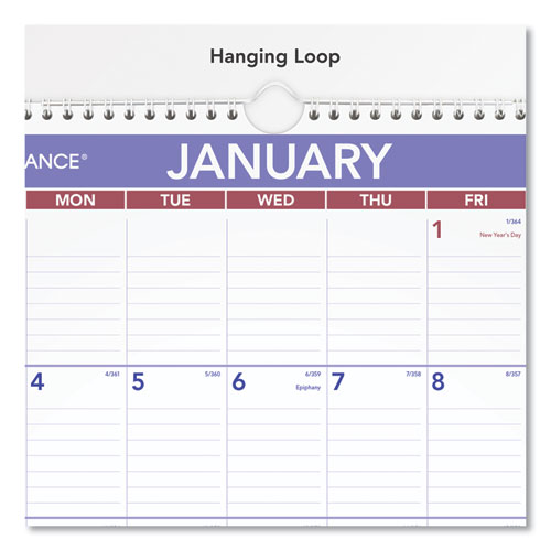 Product Details** Global Product Type Wall Calendars Dated Yes Academic Year No Calendar Format Monthly Edition Year 2026 Calendar Term 12-Month (Jan to Dec) Binding Type Wire-O Color Family White Refillable No Calendar Spread Format One Month per Page Julian Dates Yes Size (Bound-Side First) 12 x 17 Binding Details Twin-Wire Calendar Reference Blocks Current Year Sheet Color(s) White Hanger Style Wire Loop Reversible No Seasonal Availability Yes Product Biodegradability Indicator N Product Biodegradability in Days 0 Product Compostability Indicator N Package Includes (1) Wet Erase Marker Pre-Consumer Recycled Content Percent 0% Post-Consumer Recycled Content Percent 0% Total Recycled Content Percent 0% Footnote 1 Block Size: 1.56 x 2.44 Country Of Origin CN Carton Weight 5 lbs. Carton Pack Quantity 6 EA Pack Quantity 0 UPC 038576391840 UNSPSC 44112002 Shipping Weight & Item Dimensions Weight 0.554 lbs. Length 16.7 in Height 0.3 in Width 11.8 in