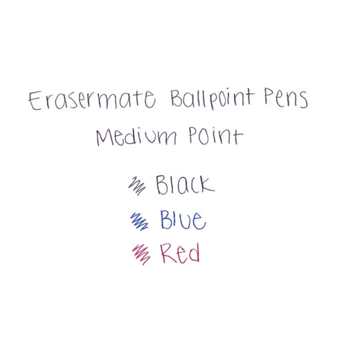 Product Details** Global Product Type Ballpoint Pens Pen Style Stick Pen Tip Type Conical Pen Point Size Type Medium Color Family Red Erasable Ink Yes Refillable No Pen Sub-Brand & Product Family Eraser Mate® Pen Type Ballpoint Pen Pen Point Size 1 mm Pen Ink Color(s) Red Pen Barrel Color(s) Red Pen Cap Color(s) Red Permanent/Washable Ink Permanent Airplane-Safe Ink Yes Low-Viscosity Ink No Pen Grip Type Smooth Visible Ink Supply No Pocket Clip Indicator Yes Product Biodegradability in Days 0 Compliance Standards Box Tops for Education Pre-Consumer Recycled Content Percent 0% Post-Consumer Recycled Content Percent 0% Total Recycled Content Percent 0% Country Of Origin MX Carton Weight 3 lbs. Carton Pack Quantity 12 DZ Pack Quantity 0 UPC 041540392019 UNSPSC 44121704 Shipping Weight & Item Dimensions Weight 0.225 lbs. Length 6.2 in Height 1.1 in Width 2.9 in