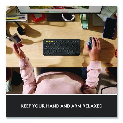 Minimize movement and maximize comfort with ERGO M575, a wireless trackball with a sculpted shape and smooth, responsive thumb control. It doesn’t need to be moved, so it’s perfect for tight desk spaces. Make any workspace your comfort zone. This compact setup has the tools you need for all-day comfort and better productivity-from a minimalist keyboard and trackball combo to the right webcam and wireless headset to feel great during calls.