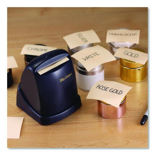 This battery powered dispenser lets you create a sticky note in just the length you need—even banner size! Saves money and waste. Notes are extra sticky for stronger hold yet repositionable. The notes feature a center adhesive that keeps the notes from curling. Sleek design does not clutter your workspace. Comes with one 150 ft roll of sticky paper that is equal to 600 3 x 3 sticky notes. Works on two AA batteries (included).