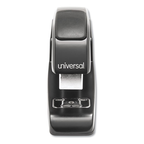 Attractive, streamlined design helps enhance almost any workplace environment. Solid metal construction and precision parts ensure reliable performance for years to come. Soft padded top grip helps relieve hand stress, and the nonskid base helps you keep a secure footing. Desktop stapler holds a full strip of standard staples. 3 1/2″ throat.