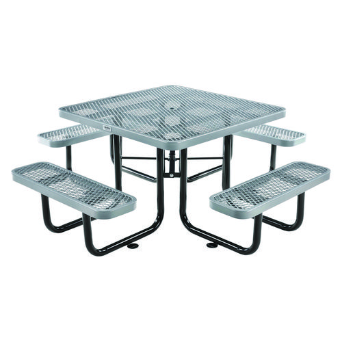 This collection of Expanded Steel Picnic Tables is made with galvanized steel and a zinc powder-coat finish for durability and protection against the elements. Featuring a mesh design, these metal picnic tables are comfortable and perfect for outdoor events. The expanded metal picnic table is able to retain structural integrity throughout use.