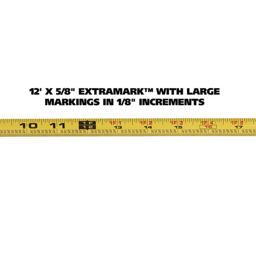 The GreatNeck ExtraMark Tape Measure features our ExtraMark measuring system with large fractional markings in 1/8 inch increments for improved readability. Measuring is more accurate, and thus quicker and easier. This tape measure has a high impact plastic casing with a rubber grip overlay for durability, reduced slippage and maximum comfort. It also has a positive lock that holds the blade securely and a convenient steel belt/pocket clip for easy carrying and accessibility.