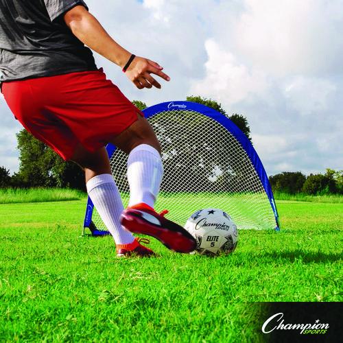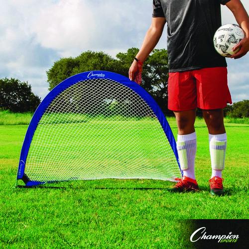 A handy, portable soccer goal, the Champion Sports pop-up half-moon goal is designed to minimize the hassle of transporting and setting up nets for practice and soccer matches. This soccer net is made with a collapsible poly/steel frame with gusseted nylon corners, nylon net and anchor pegs. It’s easy to set up and tear down, as well as durable enough to last through intense outdoor play. Once you’re done, the net easily folds up and goes in the included carrying case for transport and storage. Sold as a pair, you can set up a game just about anywhere. Ball not included.
