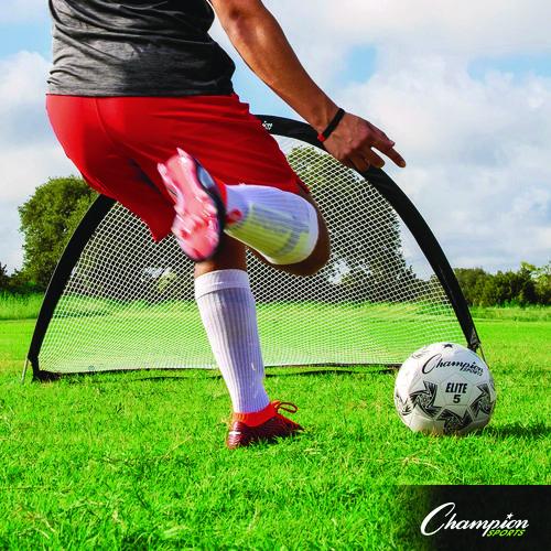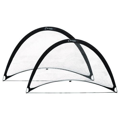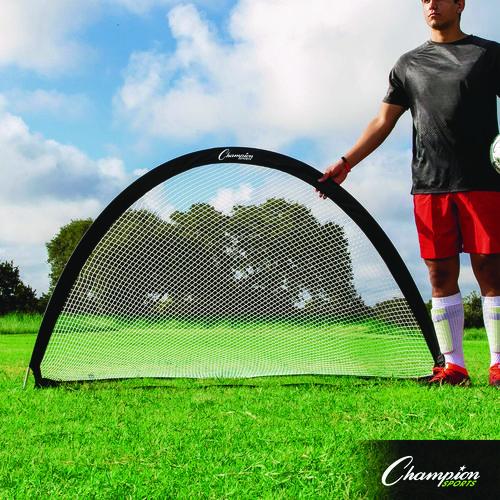 A handy, portable soccer goal, the Champion Sports pop-up half-moon goal is designed to minimize the hassle of transporting and setting up nets for practice and soccer matches. This soccer net is made with a collapsible poly/steel frame with gusseted nylon corners, nylon net and anchor pegs. It’s easy to set up and tear down, as well as durable enough to last through intense outdoor play. Once you’re done, the net easily folds up and goes in the included carrying case for transport and storage. Sold as a pair, you can set up a game just about anywhere. Ball not included.