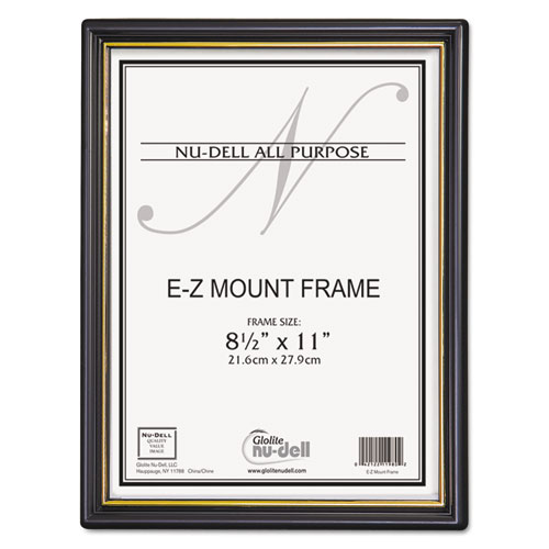 EZ Mount Document Frame with Trim Accent and Plastic Face, Plastic, 8.5 x 11 Insert, Black/Gold, 18/CartonEZ Mount Document Frame with Trim Accent and Plastic Face, Plastic, 8.5 x 11 Insert, Black/Gold, 18/Carton