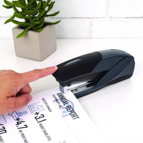Designed for the way you work, the EZTouch® Reduced Effort Stapler simplifies stapling tasks. Innovative, EZ one-motion design requires 50% less effort than traditional models, which is especially important for individuals who staple frequently throughout the day or are plagued with arthritis. Smooth, easy-touch mechanism delivers the same overall feel and quiet operation of a traditional stapler while exceling at low-sheet counts. Soft-grip surfaces enhance the feel and improve overall control for both desktop and handheld use. For best performance, use Swingline® S.F.® 4® Premium Staples.