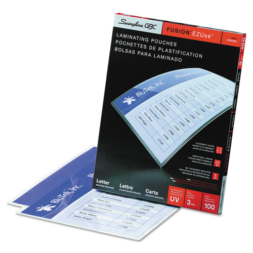 For quality lamination, rely on laminating pouches. These sized pouches are one of the easiest to use in the marketplace. Each pouch has three special features that make it easier to use, and it includes UV protection to protect documents against yellowing and fading. Alignment guides simplify document centering to provide perfect borders, while mil thickness icons help you determine the best laminator settings. Directional arrows on the pouch indicate which way to load the pouch to prevent jamming. Each of these helpful features disappears after laminating to deliver a crystal clear finish. Your finished, glossy-smooth laminated documents will be both durable and worthy of display.