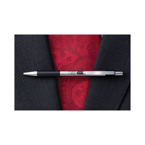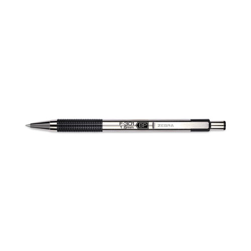 Product Details** Global Product Type Ballpoint Pens Pen Style Retractable Pen Tip Type Conical Pen Point Size Type Bold Color Family Black Erasable Ink No Refillable Yes Pen Sub-Brand & Product Family F-301® Pen Type Ballpoint Pen Pen Point Size 1.6 mm Pen Ink Color(s) Black Pen Barrel Color(s) Stainless Steel/Black Airplane-Safe Ink Yes Low-Viscosity Ink No Pen Grip Type Non-Slip Rubber Visible Ink Supply No Pocket Clip Indicator Yes Product Biodegradability in Days 0 Pre-Consumer Recycled Content Percent 0% Post-Consumer Recycled Content Percent 0% Total Recycled Content Percent 0% Country Of Origin ID Carton Weight 38 lbs. Carton Pack Quantity 96 DZ Pack Quantity 0 UPC 045888273108 UNSPSC 44121704 Shipping Weight & Item Dimensions Weight 0.35 lbs. Length 5.75 in Height 1.25 in Width 2.75 in