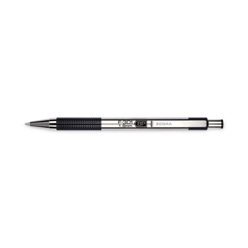 Product Details** Global Product Type Ballpoint Pens Pen Style Retractable Pen Tip Type Conical Pen Point Size Type Bold Color Family Black Erasable Ink No Refillable Yes Pen Sub-Brand & Product Family F-301® Pen Type Ballpoint Pen Pen Point Size 1.6 mm Pen Ink Color(s) Black Pen Barrel Color(s) Stainless Steel/Black Airplane-Safe Ink Yes Low-Viscosity Ink No Pen Grip Type Non-Slip Rubber Visible Ink Supply No Pocket Clip Indicator Yes Product Biodegradability in Days 0 Pre-Consumer Recycled Content Percent 0% Post-Consumer Recycled Content Percent 0% Total Recycled Content Percent 0% Country Of Origin ID Carton Weight 9 lbs. Carton Pack Quantity 144 PK Pack Quantity 2 EA UPC 045888273122 UNSPSC 44121704 Shipping Weight & Item Dimensions Weight 0.102 lbs. Length 7.5 in Height 0.55 in Width 2.216 in