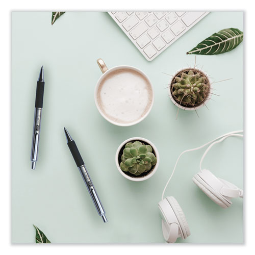 F-402 Ballpoint Pen, Retractable, Fine 0.7 mm, Black Ink, Stainless Steel/Black BarrelF-402 Ballpoint Pen, Retractable, Fine 0.7 mm, Black Ink, Stainless Steel/Black Barrel