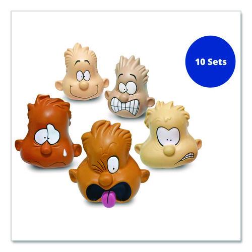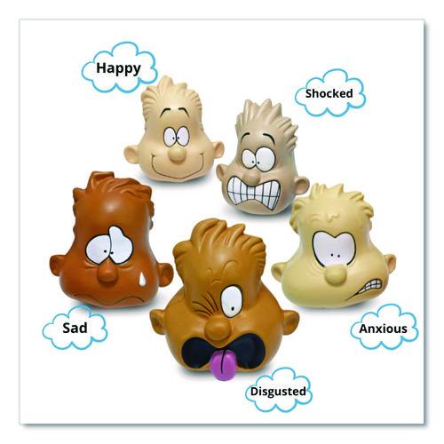 Five fun faces to squish and help express different feelings. Feeling heads are a great tool to help open up communication about one’s emotions and to relieve stress. A great tool for schools, therapy, work and home. Five different expressions come with each set: Happy, Sad, Disgusted, Shocked and Anxious. Helps both children and adults to get in touch with their emotions.