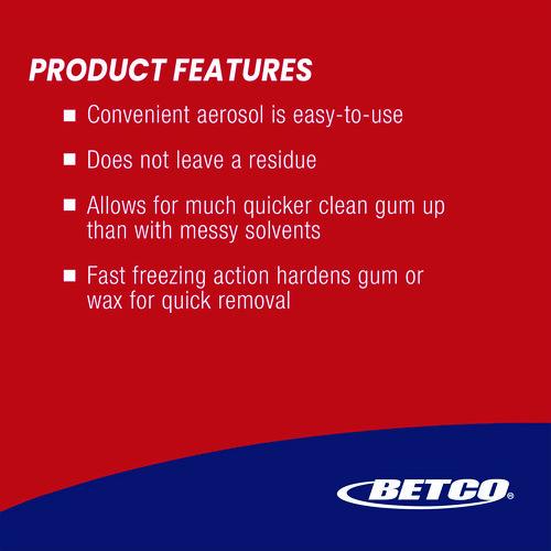 Quickly and easily removes chewing gum, candle wax and other gummy substances. The fast-freezing action of this gum remover simplifies clean up by freezing the gum so that it can be popped off with a putty knife. May be used on most surfaces.