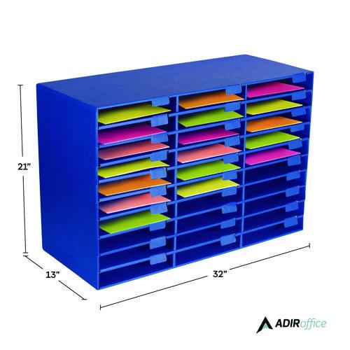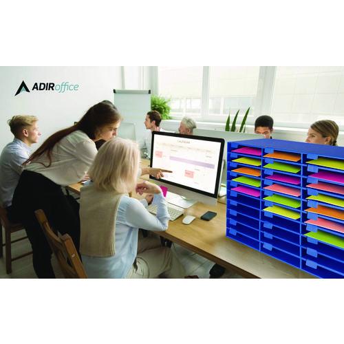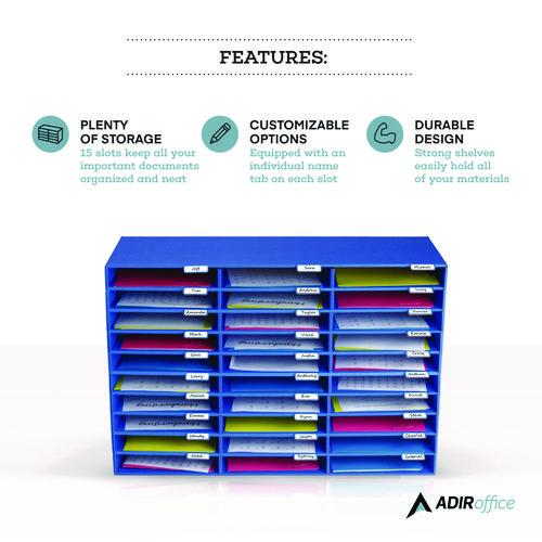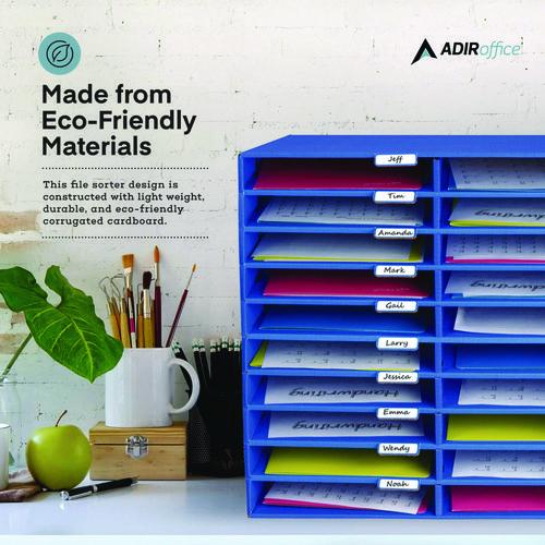 Maintain a clean and organized environment in your classroom or office with the AdirOffice Classroom File/Literature Organizer. This compact yet efficient storage solution features multiple open slots specifically designed to neatly store a variety of items such as papers, folders, magazines, notebooks, and slim binders. Each slot provides ample space, allowing for easy insertion and removal of documents without cluttering your workspace. The organizer is constructed from high-quality cardboard, ensuring that it is exceptionally durable. Its robust design and strong shelves can comfortably support the weight of your stored items, providing a long-lasting and reliable organizational solution. Additionally, the AdirOffice File/Literature Organizer includes innovative slot tabs that can be easily labeled with stickers. This feature allows you to assign slots according to names, projects, or years, making it simple to categorize and retrieve your documents. Whether you are managing a busy classroom or a bustling office, this file sorter helps you maintain a tidy and efficient workspace, enhancing your productivity and organization.