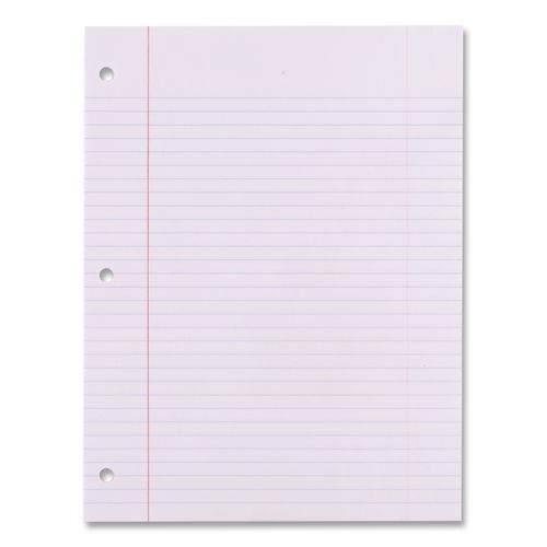 Mead filler paper is a practical choice for all of your notetaking needs. Perfect for in-class assignments, homework and more. Double-sided sheets provide plenty of notetaking space. Three-hole punched for use in standard three-ring binders. Red margin rule.