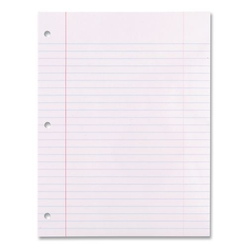 Mead filler paper is a practical choice for all of your notetaking needs. Perfect for in-class assignments, homework and more. Double-sided sheets provide plenty of notetaking space. Three-hole punched for use in standard three-ring binders. Red margin rule.