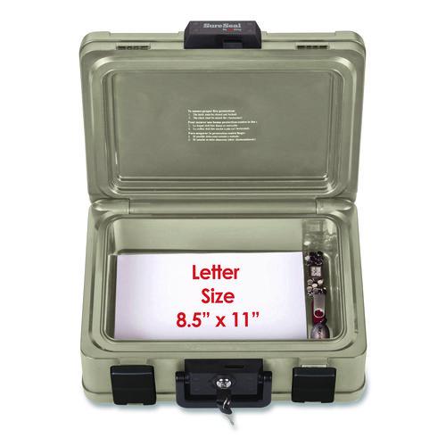 Designed to meet the security needs of today’s consumer by protecting CDs/DVDs, flash drives, portable hard drives and other valuables from fire and water damage. Accommodates letter- and legal-size documents. Dual compression latches and handle. Waterproof for two hours.