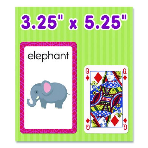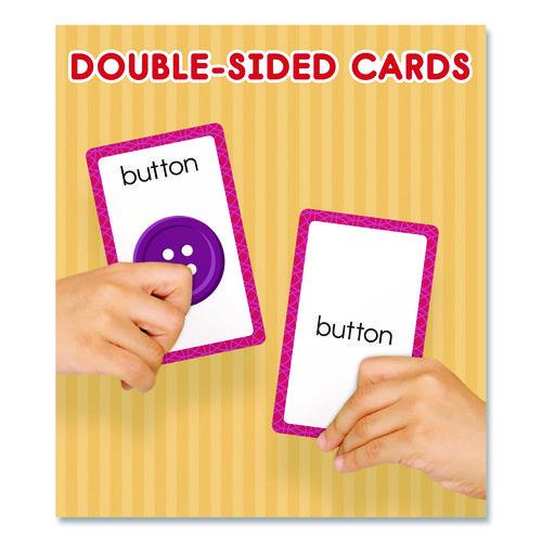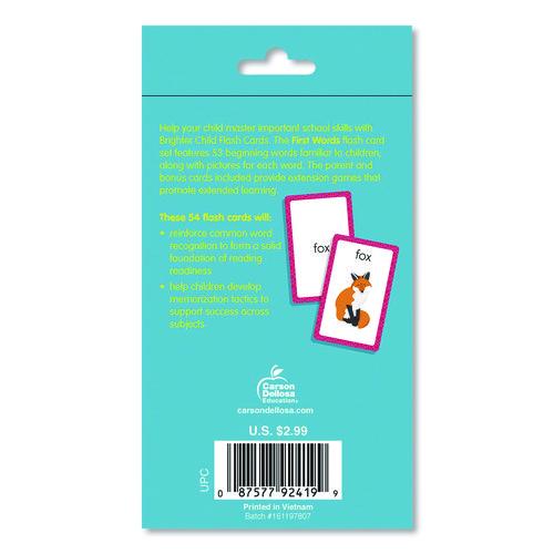 First Words Flash Cards present an easy, fun way for kids to practice essential skills. This 54-card set includes 53 cards with beginning reading words, as well as a bonus game card for additional learning fun. With charming full-color illustrations picture cues for each word, these flash cards are great phonics reinforcement to help kids get ready for school. Flash cards allow kids to develop critical thinking, decision-making, turn-taking and other skills while allowing them to learn in a hands-on way.