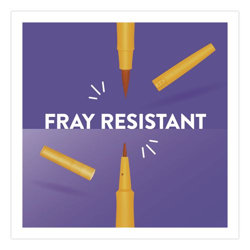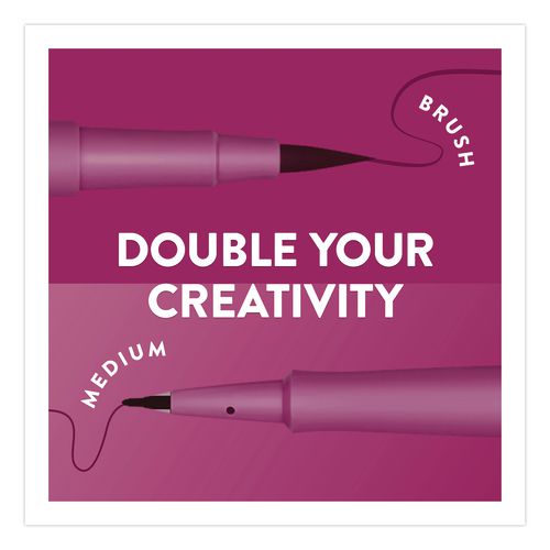 Product Details** Global Product Type Porous Point Pens Pen Style Stick Pen Tip Type Brush/Bullet Pen Point Size Type Medium Bullet,Pressure-Sensitive Brush Color Family Multicolor Erasable Ink No Refillable No Pen Sub-Brand & Product Family Flair® Dual Pen Type Porous Point Pen Pen Point Size 0.7 mm Bullet,Variable Brush Pen Ink Color(s) Assorted Pen Ink Color(s) Assortment Black,Blueberry Bubblegum,Lime,Marigold,Orchid Lei,Red,Strawberry Lollipop,Surfs Up Pen Barrel Color(s) Assorted Pen Barrel Color(s) Assortment Black,Blueberry Bubblegum,Lime,Marigold,Orchid Lei,Red,Strawberry Lollipop,Surfs Up Pen Cap Color(s) Assorted Pen Cap Color(s) Assortment Black,Blueberry Bubblegum,Lime,Marigold,Orchid Lei,Red,Strawberry Lollipop,Surfs Up Permanent/Washable Ink Permanent Archival-Quality Ink No Airplane-Safe Ink Yes Low-Viscosity Ink Yes Special Ink Properties Water-Based Liquid Pen Grip Type Smooth Visible Ink Supply No Pocket Clip Indicator Yes Product Biodegradability Indicator N Product Biodegradability in Days 0 Product Compostability Indicator N Compliance Standards ACMI AP Non-Toxic Certified,Conforms to ASTM D4236 Pre-Consumer Recycled Content Percent 0% Post-Consumer Recycled Content Percent 0% Total Recycled Content Percent 0% Country Of Origin MX Carton Weight 3 lbs. Carton Pack Quantity 16 EA Pack Quantity 0 UPC 071641211407 UNSPSC 44121711 Shipping Weight & Item Dimensions Weight 0.185 lbs. Length 8.279 in Height 0.525 in Width 5.762 in