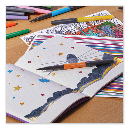 Product Details** Global Product Type Porous Point Pens Pen Style Stick Pen Tip Type Bullet Pen Point Size Type Medium Color Family Multicolor Erasable Ink No Refillable No Pen Sub-Brand & Product Family Flair® Metallic Pen Type Porous Point Pen Pen Point Size 0.7 mm Pen Ink Color(s) Assorted Pen Ink Color(s) Assortment Metallic Blue Lagoon,Metallic Bronze,Metallic Charcoal,Metallic Gold,Metallic Lavender,Metallic Pink Lemonade,Metallic Sea Foam,Metallic Silver Pen Barrel Color(s) Assorted Pen Barrel Color(s) Assortment Metallic Blue Lagoon,Metallic Bronze,Metallic Charcoal,Metallic Gold,Metallic Lavender,Metallic Pink Lemonade,Metallic Sea Foam,Metallic Silver Pen Cap Color(s) Metallic Blue Lagoon,Metallic Bronze,Metallic Charcoal,Metallic Gold,Metallic Lavender,Metallic Pink Lemonade,Metallic Sea Foam,Metallic Silver Pen Grip Type Smooth Visible Ink Supply No Pocket Clip Indicator Yes Product Biodegradability Indicator N Product Biodegradability in Days 0 Product Compostability Indicator N Pre-Consumer Recycled Content Percent 0% Post-Consumer Recycled Content Percent 0% Total Recycled Content Percent 0% Country Of Origin MX Carton Weight 6 lbs. Carton Pack Quantity 24 PK Pack Quantity 8 EA UPC 071641190498 UNSPSC 44121711 Shipping Weight & Item Dimensions Weight 0.17 lbs. Length 7.625 in Height 0.5 in Width 5.75 in
