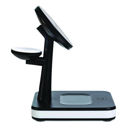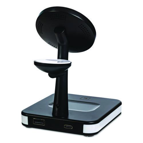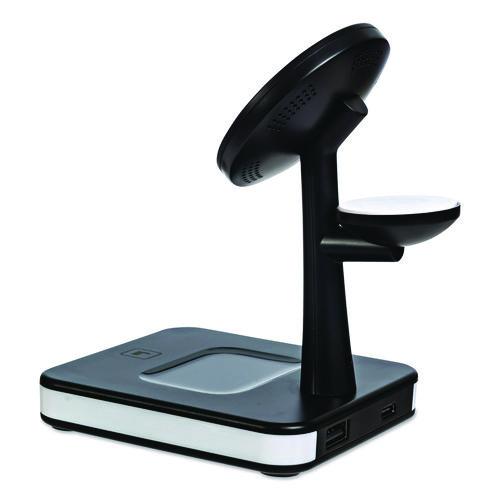 • Wireless charging station that charges up to four devices at once on one compact station to keep your devices organized and eliminate the need for multiple electrical outlets.