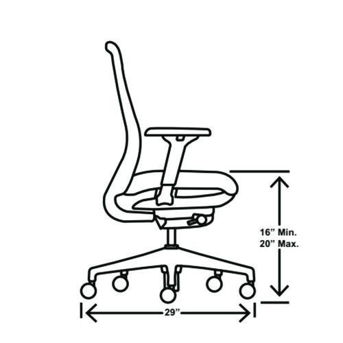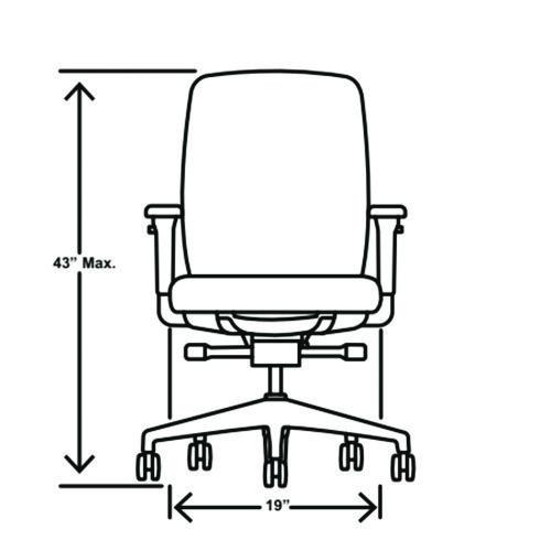 Product Details** Global Product Type Office Chairs Color Family Black Arms Included Yes Pneumatic Seat Height Adjustment Yes Tilt Tension/Tilt Lock Yes Integral Lumbar Support Yes Seat Surface Material Family Fabric Recommended Application Area(s) General Office & Task Seat Color Black Back Color Black Arm Type T-Bar Weight Capacity Supports Up to 300 lb Back Height Adjustment No Seat Glide Mechanism No Knee Tilt No Synchronized Knee Tilt No Dual-Action Tilt No Posture Lock Yes Multi-Task Control No Asynchronous Control No Dual-Clutch Posture Control No Variable Synchro-Tilt No Arm Adjustability Height Armrest Color Black Armrest Material Plastic Distance Between Arms 27.13″ Overall Width Maximum 27.13″ Overall Depth Maximum 25″ Overall Height Minimum 37.52″ Overall Height Maximum 42.5″ Seat Width Maximum 19.13″ Seat Depth Maximum 17.76″ Seat Height Minimum 14.81″ Seat Height Maximum 19.7″ Seat Surface Material Fabric Seat Fill Material Foam Back Width Maximum 18.7″ Back Height Minimum 25.3″ Back Height Maximum 37.61″ Back Surface Material Mesh Back Surface Material Family Mesh Base/Frame Color Black Base/Frame Material(s) Plastic Caster/Glide Details Five Dual-Wheel Casters Compatible Flooring Type(s) Hard Flooring,Soft Flooring Weight (Fully Assembled) 28.1 lb Product Biodegradability Indicator N Product Biodegradability in Days 0 Product Compostability Indicator N Compliance Standards Meets or Exceeds ANSI/BIFMA Standards Pre-Consumer Recycled Content Percent 0% Post-Consumer Recycled Content Percent 0% Total Recycled Content Percent 0% Disclaimer Statement Casters supplied with this chair are not suitable for all floor types. Country Of Origin MX Carton Weight 35 lbs. Carton Pack Quantity 1 EA Pack Quantity 0 UPC 197503412819 UNSPSC 56101720 Shipping Weight & Item Dimensions Weight 35 lbs. Length 22.52 in Height 32 in Width 25.75 in Warranty Backed by the HON Full Lifetime Warranty.