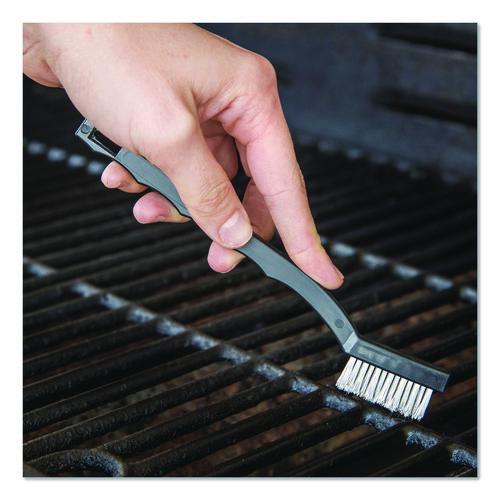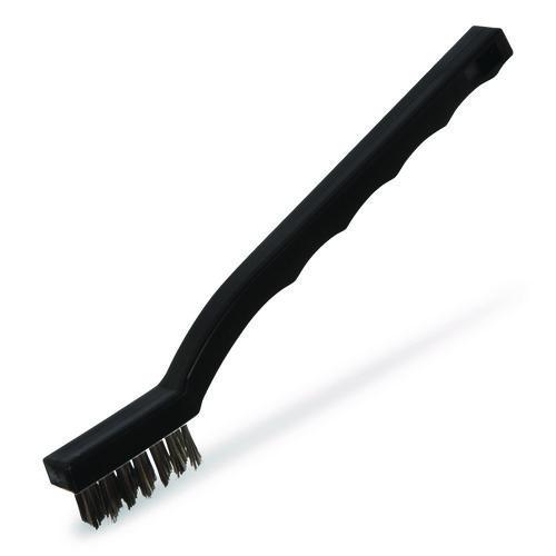 The Flo-Pac Utility Brush features a toothbrush style that is great for small jobs, tight areas and detail work, small parts, seams, threads and soldered joints. It includes a plastic handle and 32 gauge crimped stainless steel bristles.