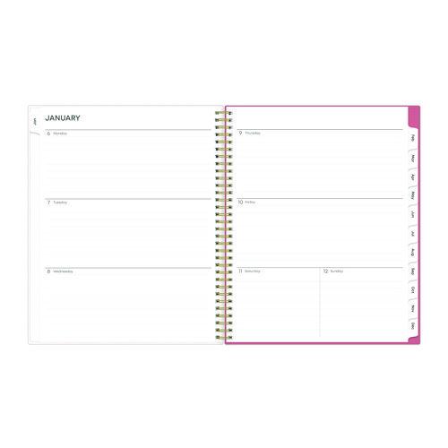 Product Details** Global Product Type Appointment Book/Personal Organizers Dated Yes Academic Year No Calendar Format Weekly/Monthly Edition Year 2025 Calendar Term 12-Month (Jan to Dec) Binding Type Wire-O Color Family Multicolor Refillable No Calendar Spread Format One Week per Two-Page Spread,One Month per Two-Page Spread Julian Dates Yes Size (Bound-Side First) 11 x 8.5 Binding Details Twin-Wire Cover Theme Butterflies Artwork Cover Color(s) Multicolor Cover Material(s) Polypropylene Binding Color(s) Gold Appointment Ruling Open Scheduling Calendar Reference Blocks One Past Month,One Future Month Separate Sections (6) Bonus Past Monthly Spreads (July-Dec),Contacts Pages,Important Dates,Notes Pages,Two-Year Reference Calendar,Yearly Goals Sheets per Calendar/Planner 70 Sheet Color(s) White Pocket Details (1) Two-Sided Interior Storage Pocket Reversible No Seasonal Availability Yes Product Biodegradability Indicator N Product Biodegradability in Days 0 Product Compostability Indicator N Pre-Consumer Recycled Content Percent 0% Post-Consumer Recycled Content Percent 0% Total Recycled Content Percent 0% Disclaimer Statement This product was made using wood sourced from a certified managed forest. Country Of Origin CN Carton Weight 7 lbs. Carton Pack Quantity 6 EA Pack Quantity 0 UPC 699931915066 UNSPSC 44112005 Shipping Weight & Item Dimensions Weight 1 lbs. Length 11.125 in Height 0.625 in Width 9.25 in