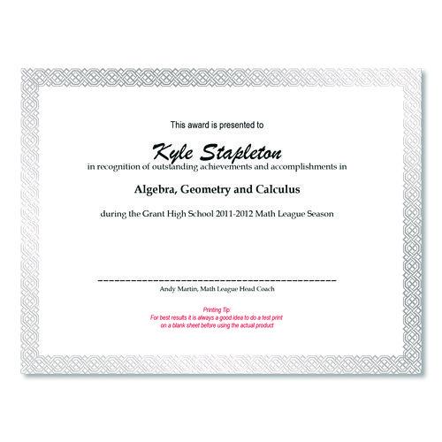 Foil Border Certificates, 8.5 x 11, Ivory/Silver, Braided with Silver Border, 15/PackFoil Border Certificates, 8.5 x 11, Ivory/Silver, Braided with Silver Border, 15/Pack