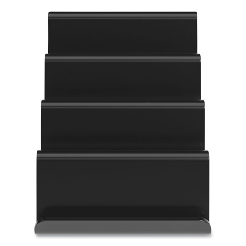 Four Compartment Business Card Holder, Holds 100 Cards, 3.9 x 6.3 x 4, Plastic, Black