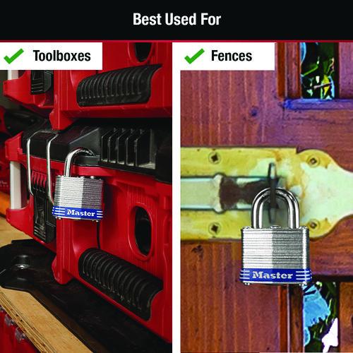 Product Details** Global Product Type Keyed Padlocks Lock Type Key Body Material Laminated Steel Color(s) Silver/Blue Number of Keys 2 Body Width 2″ Shackle Size 10 mm Shackle Material Hardened Steel Number of Pins 4 Product Biodegradability in Days 0 Package Includes (2) Keys Pre-Consumer Recycled Content Percent 0% Post-Consumer Recycled Content Percent 0% Total Recycled Content Percent 0% Special Features Model No. 5D—Thousands of key changes, dual locking levers and hardened boron alloy shackle offer a high-quality and secure lock. Country Of Origin MX Carton Weight 21 lbs. Carton Pack Quantity 24 EA Pack Quantity 0 UPC 071649335105 UNSPSC 46171501 Shipping Weight & Item Dimensions Weight 0.84 lbs. Length 1.46 in Height 6.56 in Width 3.75 in