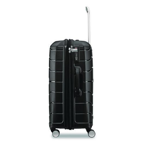 Product Details** Global Product Type Luggage Wheels Yes Color Family Black Checkpoint Friendly Yes Lock Type Combination Color(s) Black Material(s) Polypropylene Carrying Handle Yes Shoulder Strap Indicator No Telescoping Handle Yes Belt Loop No Closure Type Zipper Locking (Yes/No) Yes Inner Width 18″ Inner Depth 11.5″ Inner Height 24″ Width 19.6″ Depth 13.4″ Height 27.95″ Product Biodegradability Indicator N Product Biodegradability in Days 0 Product Compostability Indicator N Pre-Consumer Recycled Content Percent 0% Post-Consumer Recycled Content Percent 0% Total Recycled Content Percent 0% Special Features Four-Wheeled Spinner Country Of Origin CN Carton Weight 13 lbs. Carton Pack Quantity 1 EA Pack Quantity 0 UPC 043202721397 UNSPSC 53121503 Shipping Weight & Item Dimensions Weight 13.13 lbs. Length 27.5 in Height 13.1 in Width 18.95 in Warranty Manufacturer’s limited 10-year warranty.