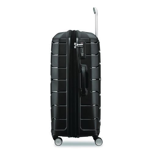 Product Details** Global Product Type Luggage Wheels 4 Color Family Black Checkpoint Friendly Yes Lock Type Combination Color(s) Black Material(s) Polypropylene Carrying Handle Yes Shoulder Strap Indicator No Telescoping Handle Yes Belt Loop No Closure Type Zipper Locking (Yes/No) Yes Inner Width 20″ Inner Depth 13″ Inner Height 27.6″ Width 20.95″ Depth 13.8″ Height 31.1″ Product Biodegradability Indicator N Product Biodegradability in Days 0 Product Compostability Indicator N Pre-Consumer Recycled Content Percent 0% Post-Consumer Recycled Content Percent 0% Total Recycled Content Percent 0% Special Features Four-Wheeled Spinner Country Of Origin TH Carton Weight 15 lbs. Carton Pack Quantity 1 EA Pack Quantity 0 UPC 043202721434 UNSPSC 53121503 Shipping Weight & Item Dimensions Weight 15.455 lbs. Length 30.15 in Height 13.7 in Width 20.55 in Warranty Manufacturer’s limited 10-year warranty.
