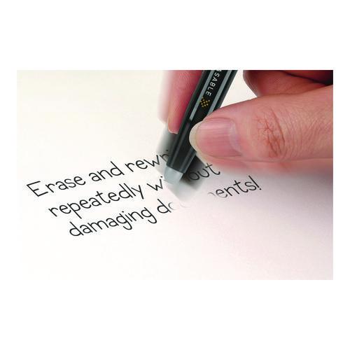 FriXion Ball® Erasable Gel Pens write smoothly and erase cleanly, so you can erase every ‘oops’ (the written ones, at least). Offering unlimited do-overs, you can write, erase and re-write until you get it right, without any wear or tear to the paper or messy eraser crumbs. The heat generated by erasing friction turns the unique thermo-sensitive gel ink clear, so your marks simply disappear from the page. Mistakes are a thing of the past with FriXion. Now nobody needs to know it wasn’t perfect the first time! Stylish, ink-color-matched barrel features a cushioned, dimpled grip on one end and an included eraser on the other as well as a snap-tight cap.