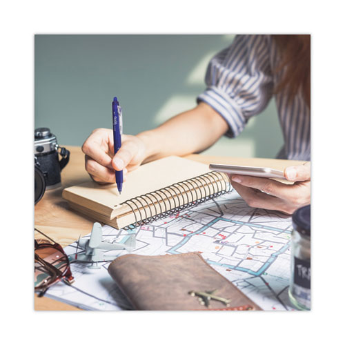 Product Details** Global Product Type Gel Pens Pen Style Retractable Pen Tip Type Conical Pen Point Size Type Fine Color Family Multicolor Erasable Ink Yes Refillable Yes Pen Sub-Brand & Product Family FriXion® Clicker Erasable Pen Type Gel Pen Pen Point Size 0.7 mm Pen Ink Color(s) Assorted Pen Ink Color(s) Assortment Black,Blue,Green,Navy,Pink,Purple,Red,Turquoise Pen Barrel Color(s) Assorted Pen Barrel Color(s) Assortment Black,Blue,Green,Navy,Pink,Purple,Red,Turquoise Low-Viscosity Ink No Special Ink Properties Water-Based Gel Pen Grip Type Dimpled Rubber Visible Ink Supply No Pocket Clip Indicator Yes Product Biodegradability Indicator N Product Biodegradability in Days 0 Product Compostability Indicator N Pre-Consumer Recycled Content Percent 0% Post-Consumer Recycled Content Percent 0% Total Recycled Content Percent 0% Country Of Origin JP Carton Weight 13 lbs. Carton Pack Quantity 48 ST Pack Quantity 8 EA UPC 072838132857 UNSPSC 60121524 Shipping Weight & Item Dimensions Weight 0.21 lbs. Length 5.9 in Height 0.64 in Width 4.48 in