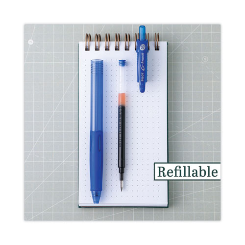 Product Details** Global Product Type Gel Pens Pen Style Retractable Pen Tip Type Conical Pen Point Size Type Fine Color Family Blue Erasable Ink No Refillable Yes Pen Sub-Brand & Product Family G-Knock BeGreen® Pen Type Gel Pen Pen Point Size 0.7 mm Pen Ink Color(s) Blue Pen Barrel Color(s) Translucent Blue/Blue Low-Viscosity Ink No Special Ink Properties Water-Based Gel Pen Grip Type Cushioned Rubber Visible Ink Supply Yes Pocket Clip Indicator Yes Manufacturer Pen Refill # 77241 Product Biodegradability Indicator N Product Biodegradability in Days 0 Product Compostability Indicator N Pre-Consumer Recycled Content Percent 81% Post-Consumer Recycled Content Percent 0% Total Recycled Content Percent 81% Country Of Origin JP Carton Weight 4 lbs. Carton Pack Quantity 12 DZ Pack Quantity 0 UPC 072838315076 UNSPSC 60121524 Shipping Weight & Item Dimensions Weight 0.33 lbs. Length 5.75 in Height 1.2 in Width 3 in